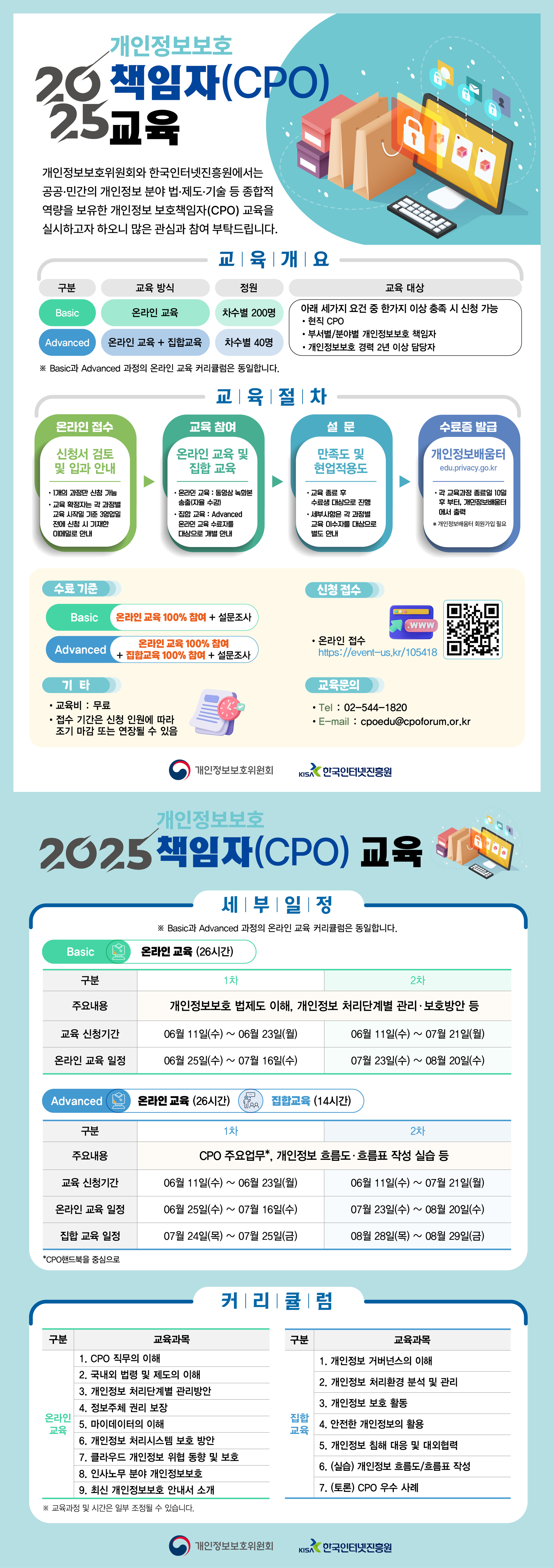 | [공지] 2025 KISA 개인정보 보호책임자 교육 과정 개요_1차, 2차 | 교육 사무국 / 2025.06.17 | |
