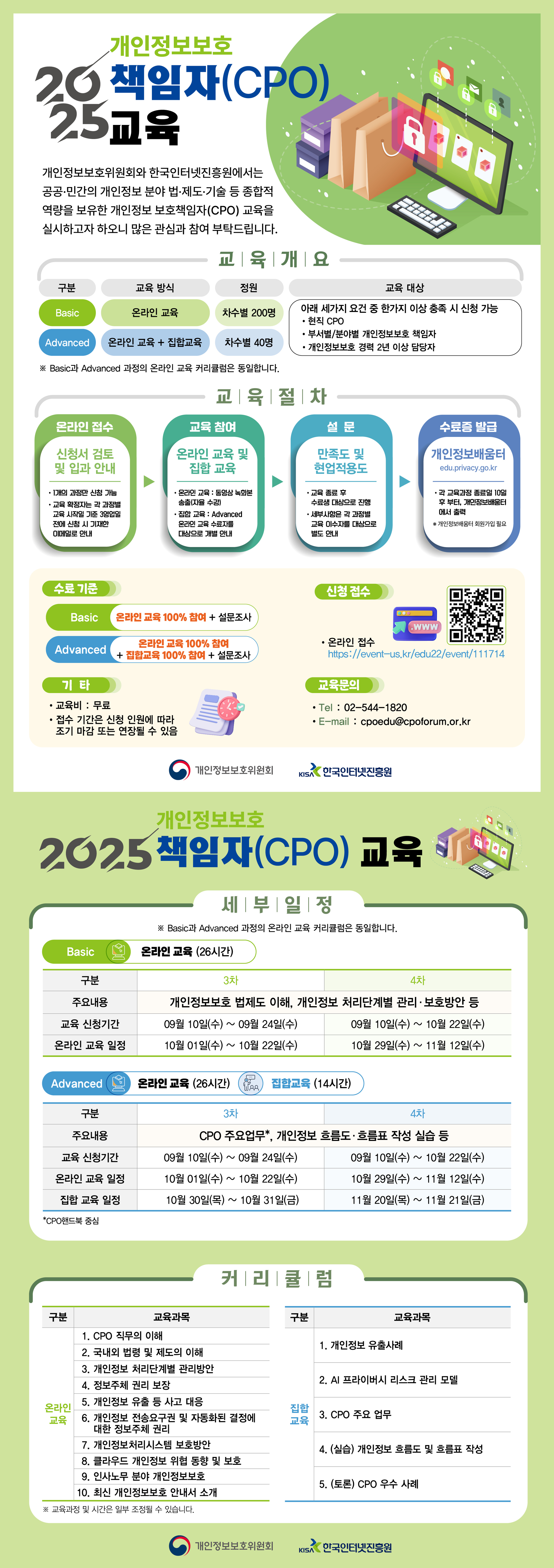 | [공지] 2025 KISA 개인정보 보호책임자 교육 과정 개요_3차, 4차 | 교육 사무국 / 2025.09.15 | |